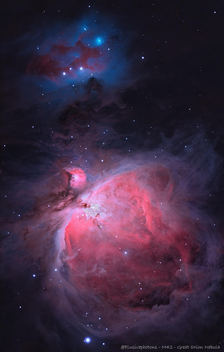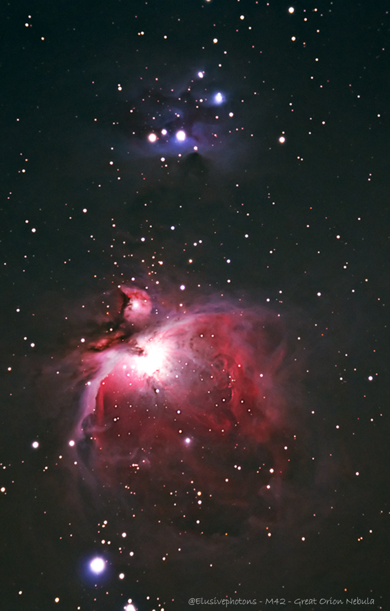 Down the Rabbit Hole... Needless to say I was hooked. This inevitably led to me to a near endless pursuit of better and better images through research, testing, upgrading, practise, etc, etc over the past 15 years. I believe I have finally reached a point in which I'm happy with what I have and my processes I have developed to get me the best images possible given my sky conditions and current experience level. I've really enjoyed the adventure so far and look to continue it for the next 15+ years. This winter was the first time I decided to revisit M42, The Great Orion Nebula, as it's never an easy target. Which is something I did not know all those years ago, but being at 55deg latitude means it only gets to around 29deg above the horizon. Being this low in the sky means imaging through a lot of atmosphere which is usually turbulent at this time of year. Due to this I can only manage acquiring 3-4 hours of photons on a good night. Luckily this February I was presented with a series of clear nights and was able to get the job accomplished. I would have liked to get a couple more nights in but it just isn't going to happen unfortunately. All in all, I'm very pleased with the outcome and I think it really shows the difference 15 years can make! I will say in closing though that what I had heard all those years ago remains true to this day... Astrophotography is a difficult task! (But as I've found out, also very rewarding) |