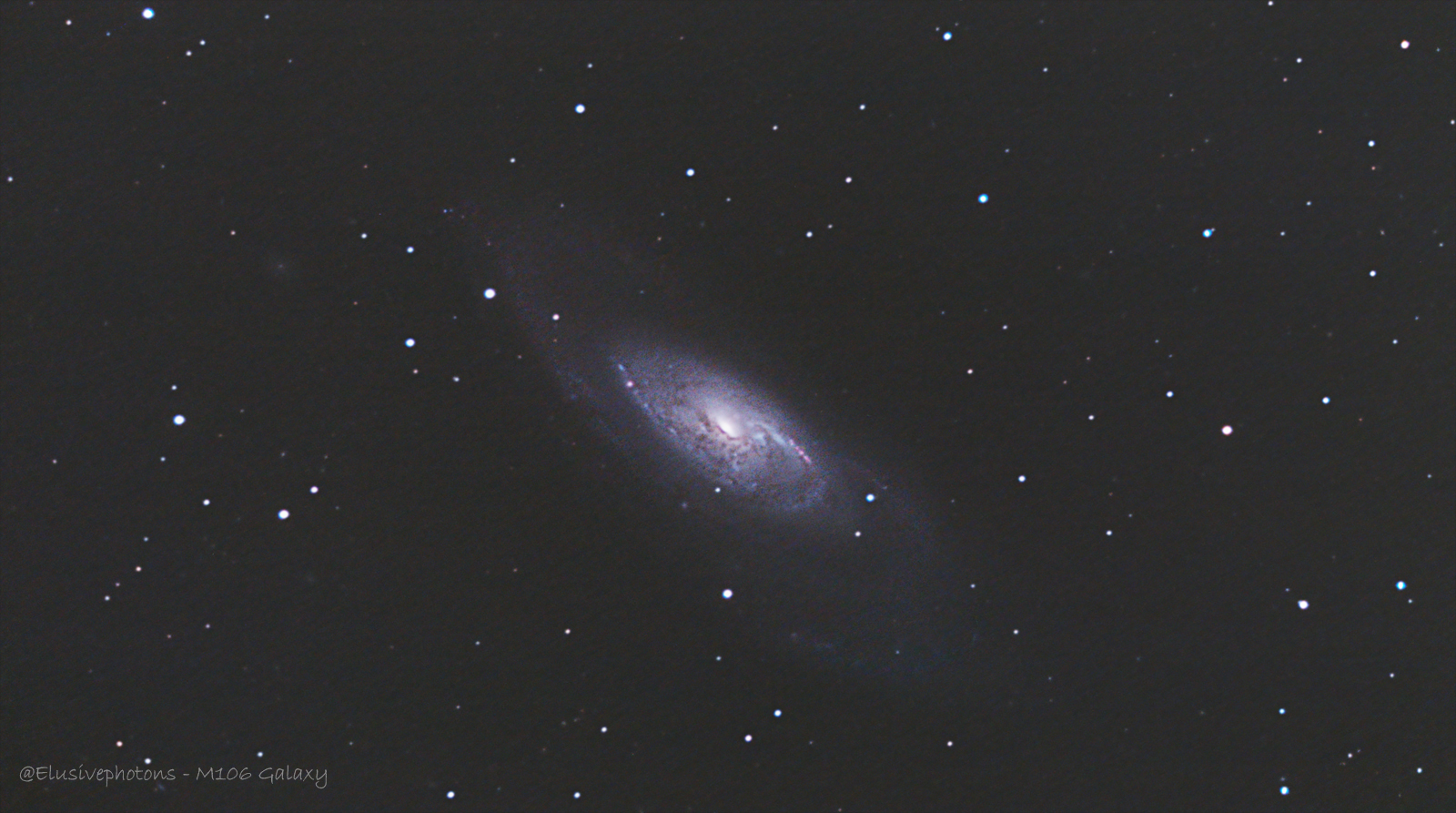 Nestled amidst the vast cosmic expanse, the M106 galaxy beckons with its resplendent beauty and enigmatic nature. Located approximately 23.5 million light-years away from Earth, this stunning spiral galaxy resides within the constellation Canes Venatici. Spanning an impressive diameter of about 135,000 light-years, M106 captivates observers with its grandeur and intricate structure. Its spiral arms, adorned with dust lanes and bright star clusters, spiral outward from a luminous central core, casting a mesmerizing glow that illuminates the cosmic tapestry.